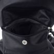 Dámský módní batoh v černé barvě s klopou, s regulovatelnými popruhy a poutkem na zavěšení.