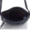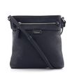 Menší dámská crossbody kabelka v temně modré barvě se stříbrnými doplňky.