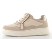 Dámské kožené tenisky značky Gabor představují ideální volbu pro jarní a letní dny. Tyto extra široké tenisky s prostorným kulatým střihem jsou navrženy pro velmi široké chodidlo, což zajišťuje maximální pohodlí i při celodenním nošení. Svršek z kvalitní kůže v různých úpravách, doplněný o jemné pudrové a metalické béžové detaily, dodává obuvi elegantní vzhled.