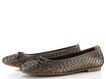 Dámské komfortní baleríny s koženým proplétaným svrškem v tmavé metalické barvě.