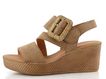 Celokožené dámské sandály na vysokém klínku se zapínáním na suchý zip.