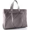 Dámská shopperka střední velikosti v metalickém provedení se vzorem na přední straně a madly do ruky i přes rameno.