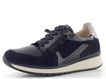 Dámské široké tenisky v tmavě modré barvě, s pružným materiálem v místě kloubků a se dvěma funkčními zipy.
